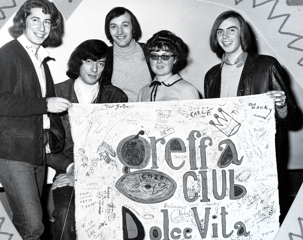 La Greffa aveva uno scopo ben preciso: organizzare manifestazioni musicali riservate ai giovani e alla musica leggera. «Le case discografiche ci mandavano le prime copie dei dischi e i manifesti dei cantanti per saggiare il gradimento da parte del pubblico e creare interesse verso gli artisti che loro avevano in scuderia – ricorda ancora Nadia Bonafini –. Noi cominciammo a contattare direttamente i cantanti invitandoli ad esibirsi a San Giovanni Lupatoto. A quel tempo non c’erano molte formalità da rispettare, non esistevano gli agenti e spesso le esibizioni neppure si pagavano, in particolare se il cantante era relativamente noto. Si parlava direttamente con l’artista, si concordava la data della serata pattuendo solo il rimborso per le spese di viaggio sostenute e il pranzo dopo l’esibizione». Gli spettacoli non si svolgevano nel bar Bonafini ma nei saloni del bar Lucerna, in via Garofoli, assai più capienti. Lì arrivarono i cantanti Dino, Claudio Lippi e Michele accompagnati dai loro gruppi. Si esibirono a più riprese anche i Nomadi (nella foto in basso e con I Rokes), i Menphis, i Tornados e i Condors. «Il legame che si instaurava con gli artisti era genuino. Lo stesso Giorgio Gaber, al Ristori di Verona per uno spettacolo, venne fino alla Lucerna a San Giovanni Lupatoto per partecipare ad una festa organizzata dalla Greffa» riferisce ancora Nadia che ricorda ancora come nel 1967 uno screzio con il parroco pose di fatto fine alla sarabanda della Greffa.